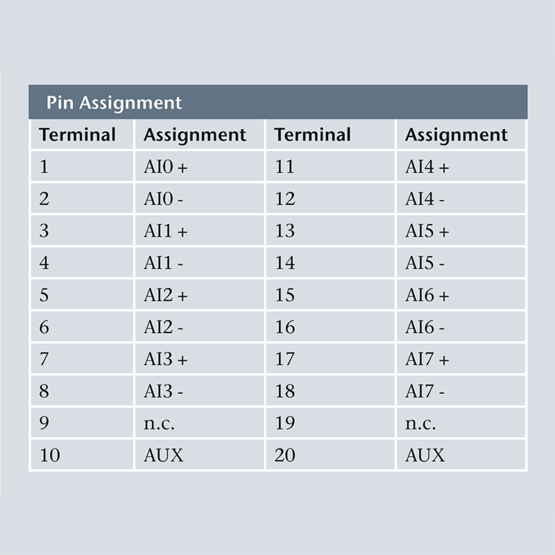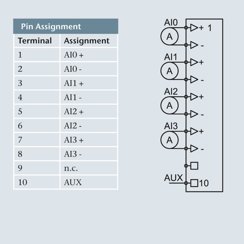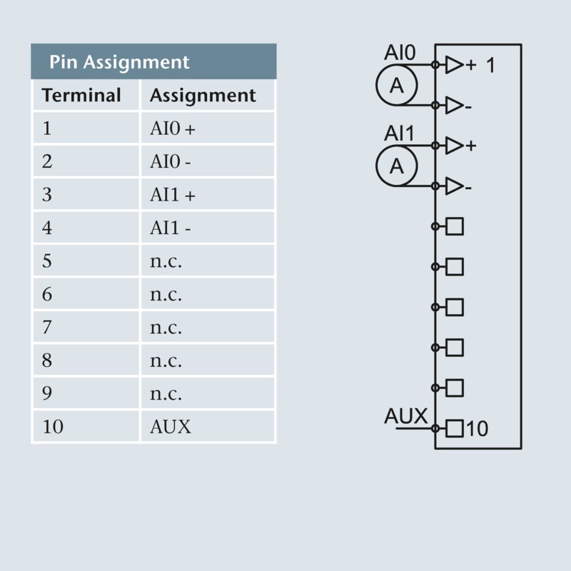 - Measuring ranges 0 ... 20 mA, 4 ... 20 mA, ±20 mA, individually configurable for each channel