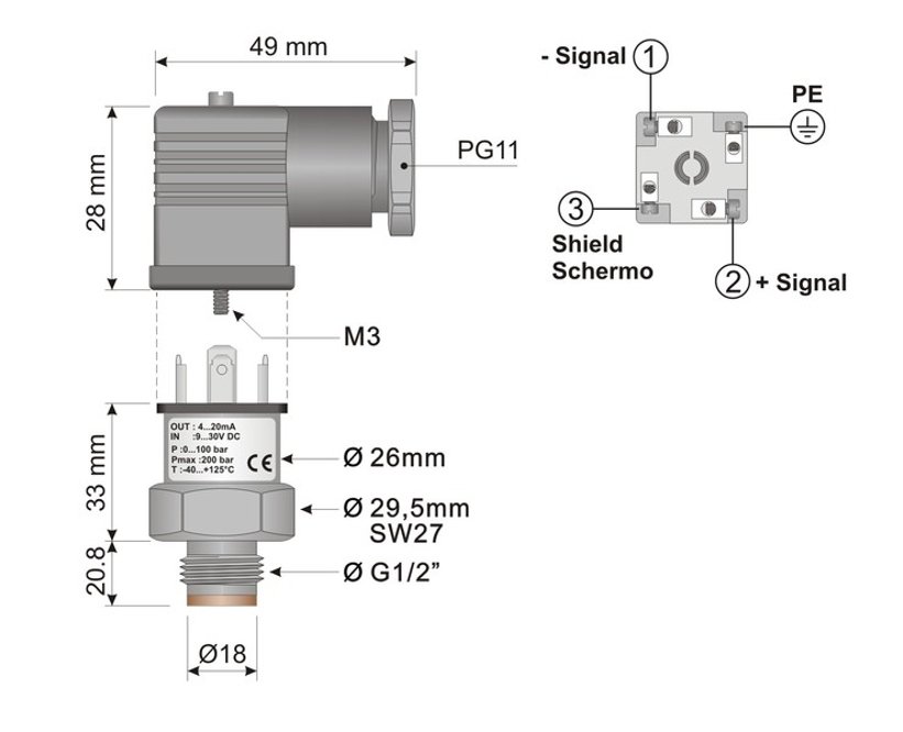 The AISI316L steel housing, the 1/2''G thread and the DIN43650-A connector make installation on site quick and easy.