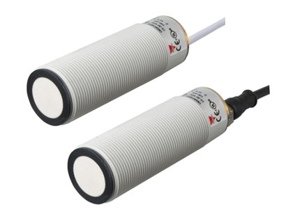 Ultrasonic sensors in M30 plastic body with sensing up to 3,5 m. There is microprocessor control of the digital filtering that makes the sensor immune to most electromagnetic interferences and the output is one analog (positive or negative slope) and one digital output. On the body of the sensors there is a teaching button for the programming of function, outputs etc.