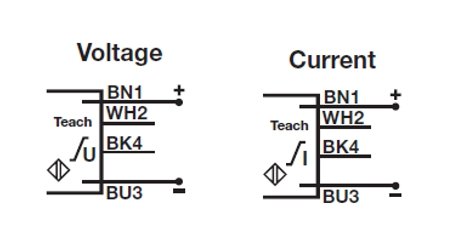 Ultrasonic sensors in M18 plastic body with sensing up to 30 cm or 80 cm. There is microprocessor control of the digital filtering that makes the sensor immune to most electromagnetic interferences and the output is one analog with positive or negative slope in 0-10 V or 4-20 mA. The adjustments are ‘’teach by wire’’.