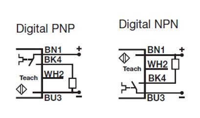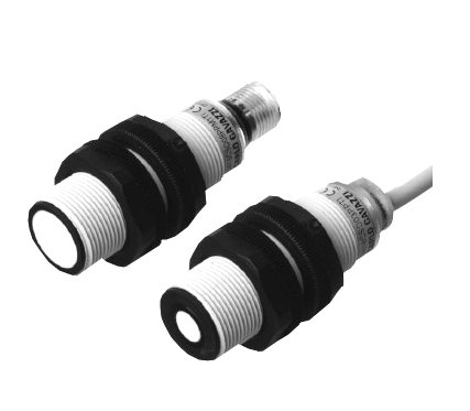 Ultrasonic sensors in M18 plastic body with sensing up to 30 cm or 80 cm. There is microprocessor control of the digital filtering that makes the sensor immune to most electromagnetic interferences and the output is one digital output with “window” detection with two set points. The adjustments are ‘’teach by wire’’.