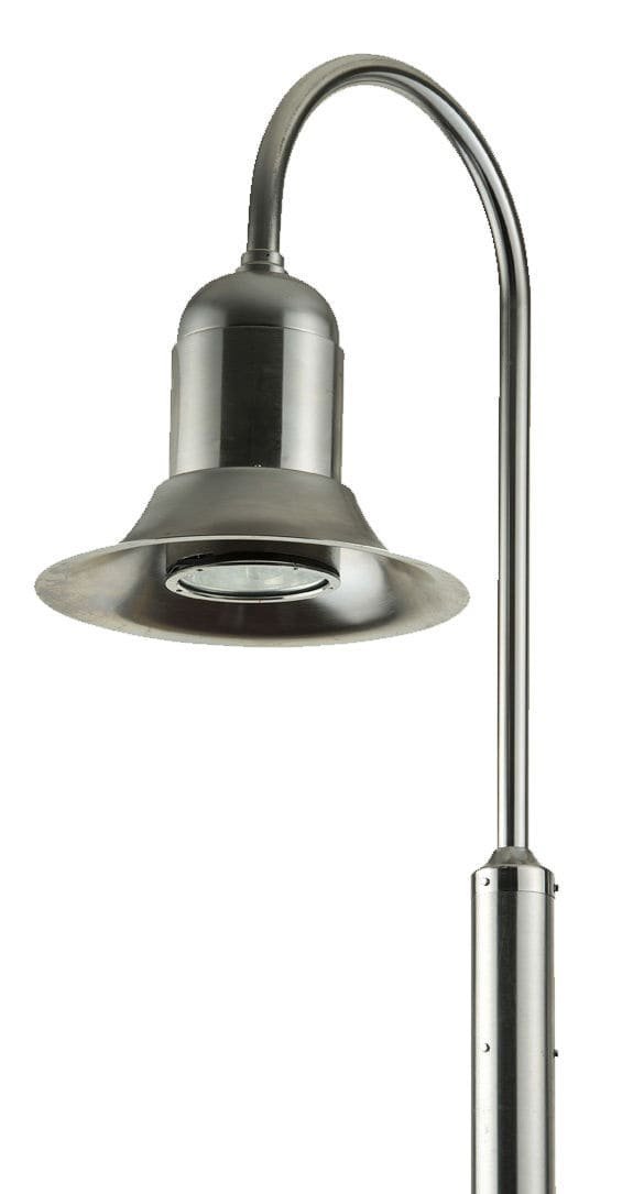 LED system with, bell shaped body and pole, both realized in AISI 316L stainless steel. Maximum power 32W. Available optics: street.