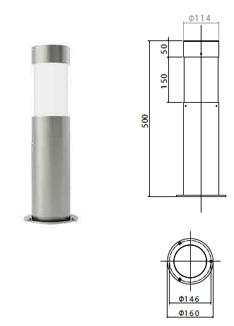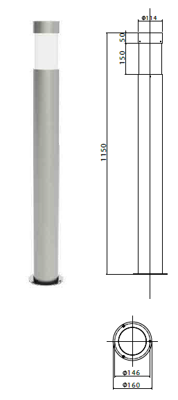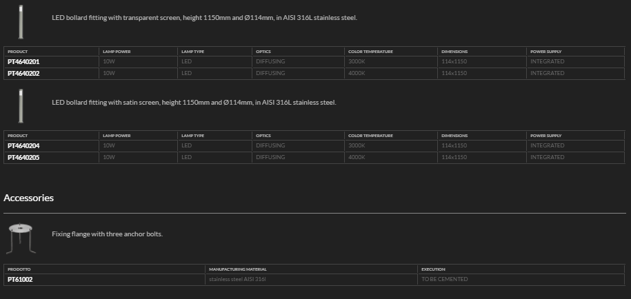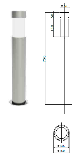 Bollard luminaires in stainless steel AISI 316L. With its minimal, evergreen design and its diffuse lighting it is ideal for gardens and parks.