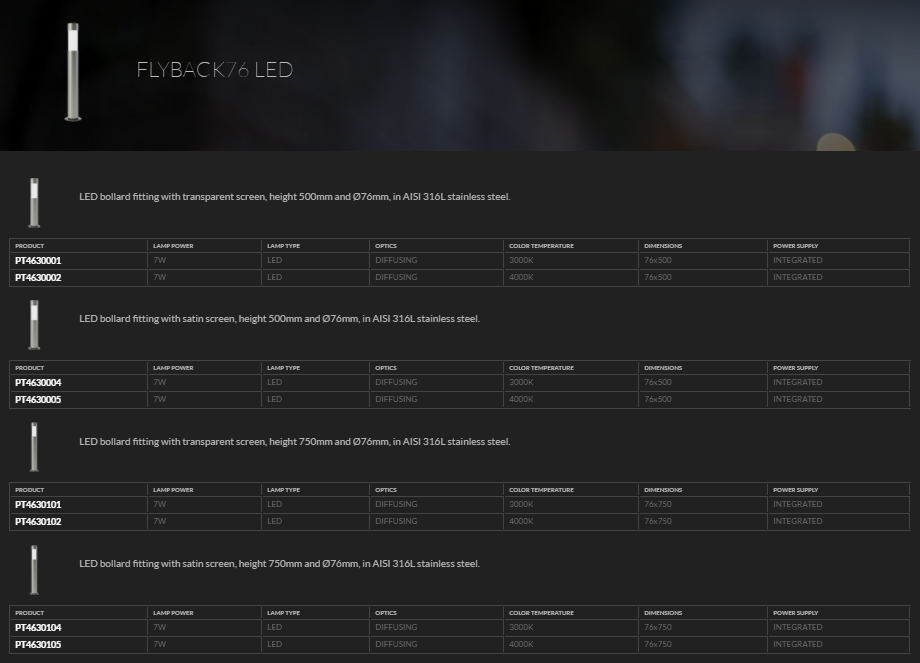 Stainless Steel Bollard luminaries FLYBACK76 LED. Stral