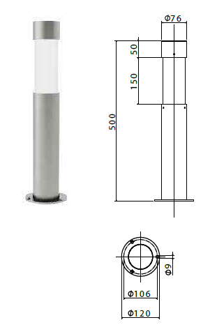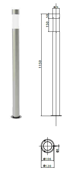 Bollard luminaires in stainless steel AISI 316L. With its minimal, evergreen design and its diffuse lighting it is ideal for gardens and parks.