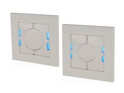 SHA4XWLS4: Programmable wireless with integrated antenna light switches developed to fit into wall socket and frames from Fuga, NIKO, and Bticino, with 4 buttons and 4 LEDs for smart-house / building automation applications (light control, roller blinds control and many other functions supported by the smart-house controller).