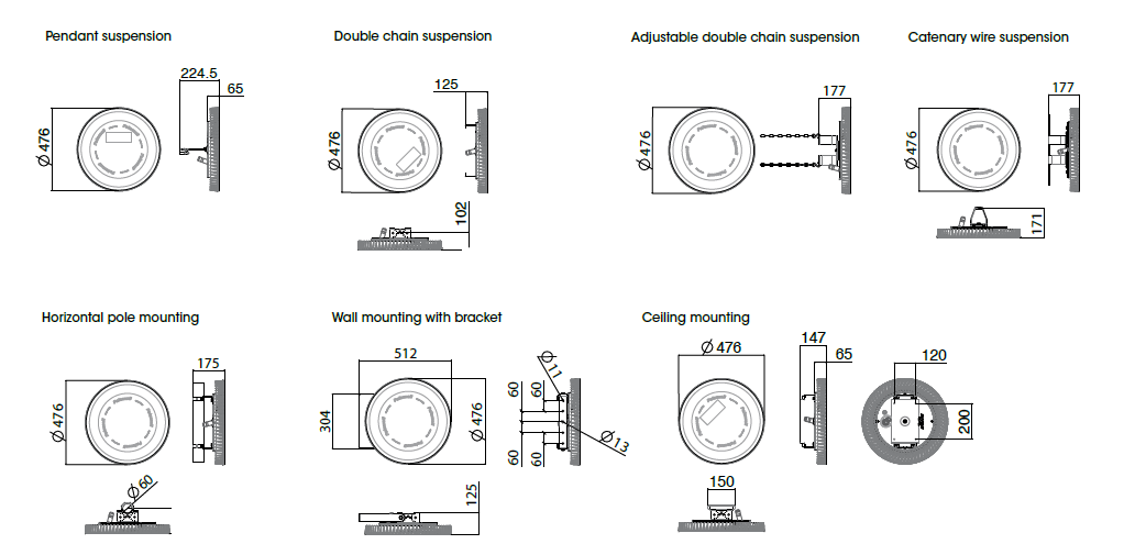 The polycarbonate diffuser version makes the device suitable to be installed in food industries compliant with the HACCP standards. The different light distributions (extra wide, narrow, elliptical and asymmetrical) allow for finding the best solution for the different working applications, guaranteeing the visual comfort and best light performance.