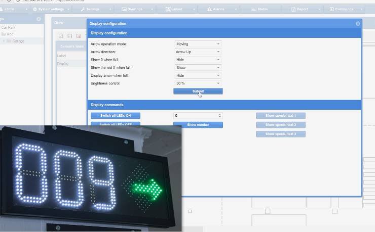 The Parking Guidance System uses sensors/indicators and displays with arrows to guide the drivers to the vacant spaces in indoor carparks. The unique feature of the system is the integrated option to save energy by controlling lighting and ventilation according to demand