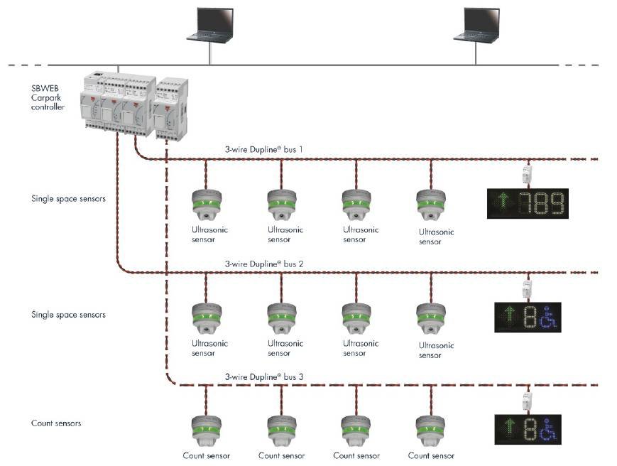 Carpark III is the third generation of Carlo Gavazzi's Parking Guidance System. The new system features a sensor for mounting at the space entry and with built-in multi-colour LED indicator. A unique feature of the system is the integrated option to save energy by controlling lighting and ventilation according to demand.
