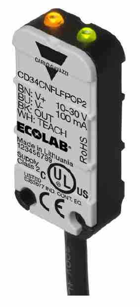 The sensor’s robust and compact housing, IP69K ratings and ECOLAB approval make it very suitable for washdown applications and harsh environments.