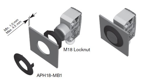 ABS cylindrical-rectangular DC retro-reflective photoelectric sensors, with potentiometer for sensitivity adjusting. Usage for general purpose applications and for applications which require frequent washing with hot water under pressure (IΡ69K). In the pack includes the mounting bracket APA18-MB1.