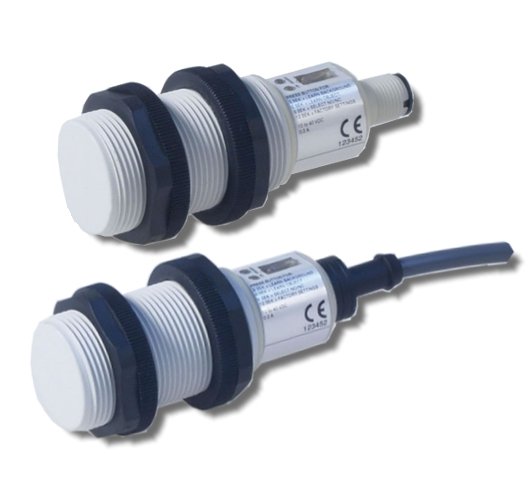 DC capacitive sensors Μ30 with humidity compensation and alarm output. Sensing distance: 1 - 30 mm (teach-in settings)