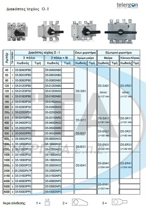 Switch–disconnectors 0-Ι AC S5000 3 x , 3 x +N 500A-630A-800A C* .Telergon