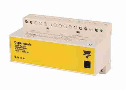 Dupline-Safe is based on the Carlo Gavazzi fieldbus: it has been carried out in close cooperation with TUV Rheinlan Group. Dupline Safe offers a flexible and easy-to-wire solution complying with EN954- 1 Cat 4, and at the same time the fast and precise diagnostic feature reduces the plant downtime. Big advantages can be achieved using bus communication in safety related systems. The immediate indication of causes for production stops enables significant downtime reduction, especially on large machines and plants.