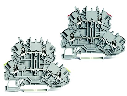 Seamless electrical installations are guaranteed with this double-deck terminal block (item number 2000-2201/352-000). The double-deck terminal block also functions as a through terminal block. Conductors should only be connected to this double-deck terminal block if their strip length is between 9 mm and 11 mm. Featuring conductor terminals along with Push-in CAGE CLAMP®, this connector is highly versatile. Our Push-in CAGE CLAMP® is a universal, maintenance-free connection solution for all conductor types, featuring a winning design: It allows direct insertion of both solid and fine-stranded conductors with ferrules without needing tools. No preparation is required; for example, crimping the conductor's ferrule is not necessary. This double-deck terminal block is suitable for conductor cross sections ranging from 0.14 mm² to 1.5 mm². It has two levels. Two potentials can connect using the four clamping points The gray housing is made of polyamide (PA66) for insulation. These through rail-mount terminal blocks are mounted using DIN-35 rails.