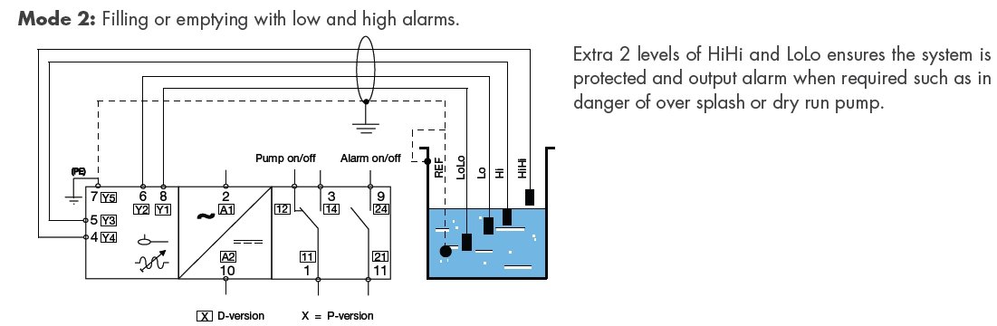 2 - Extra 2 levels of HiHi and LoLo ensures the system is protected and output alarm when required such as in danger of over splash or dry run pump