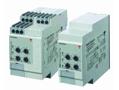 The relays monitor their own power supply voltage and the current of a balanced 3-phase system.