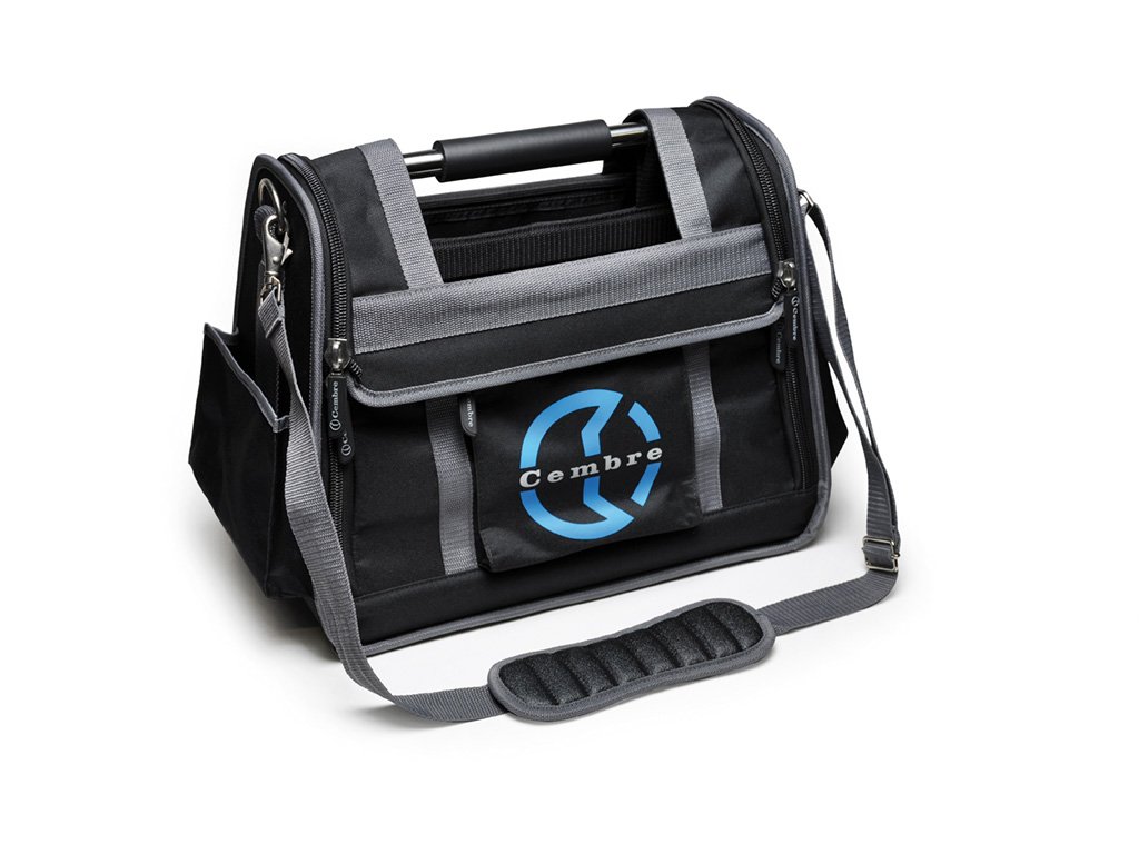 Practical tool bag in robust fabric, with 2 separate compartments to neatly arrange hand tools. Additional equipment may be accommodated via handy hooks and external pockets while documents are safely stored inside. A shoulder strap and sturdy metal handle make it easy to carry.