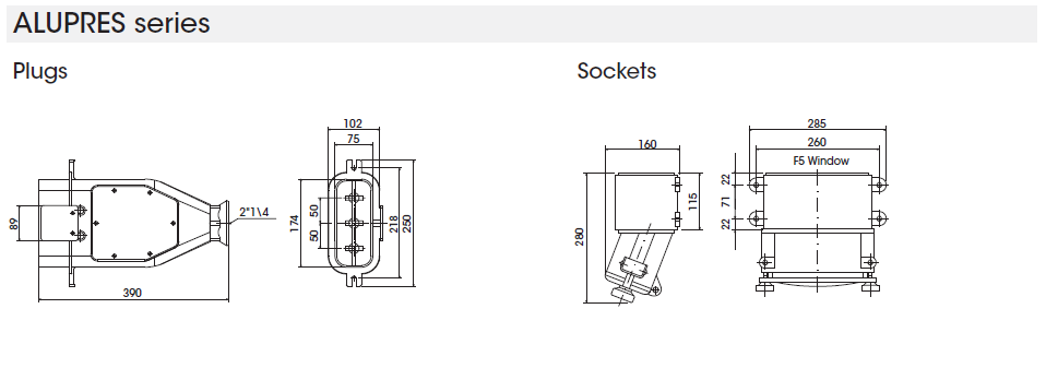 Plug in aluminium alloy with cable gland, with flat poles.The main body is treated with ecological anticorrosion passivation with fluoro zirconium and finished with hot polymerized scratchresistant non-toxic polyester painting.