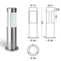 Bollard luminaires in stainless steel AISI 316L. With its minimal, evergreen design and its diffuse lighting it is ideal for gardens and parks.