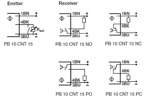 The only different in characteristics with the above photo-sensors paragraph is the code between transmitter and receiver that permit to put many through-beam photoelectric sensors in a group without problems (3 different codes on order to improve neighbor immunity). Sensing range 20 m and transistor output.