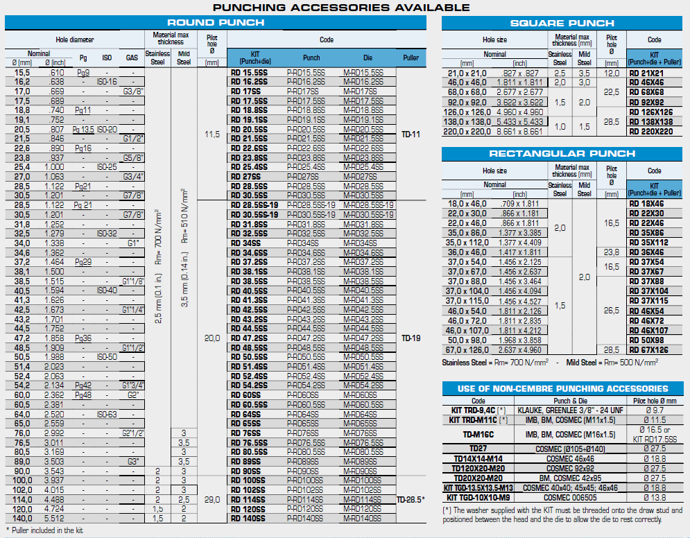 Hydraulic head, for hole punching stainless steel, soft steel, fibreglass and plastic sheet materials up to 3,5 mm thickness.