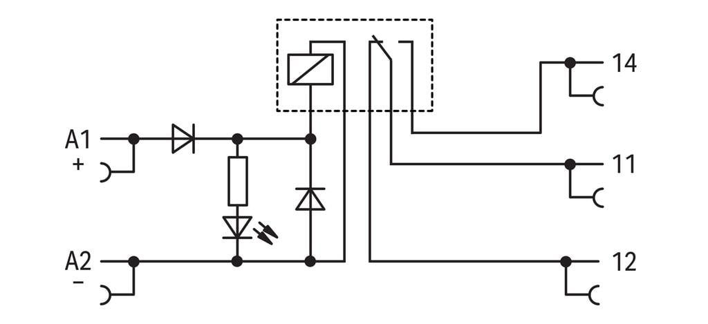 Relay module with yellow LED and 1 x NO+NC contact. Supply 12 or 24 V DC. WAGO