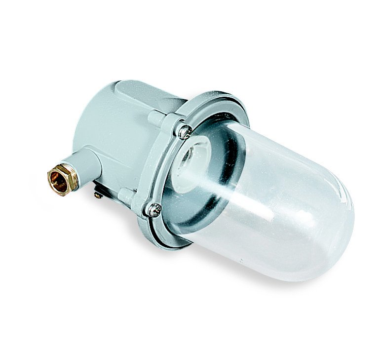 - Cylindrical lighting fixtures UNAV 2132 in marine grey painted brass with UNAV 1948 cable glands 230V IP66