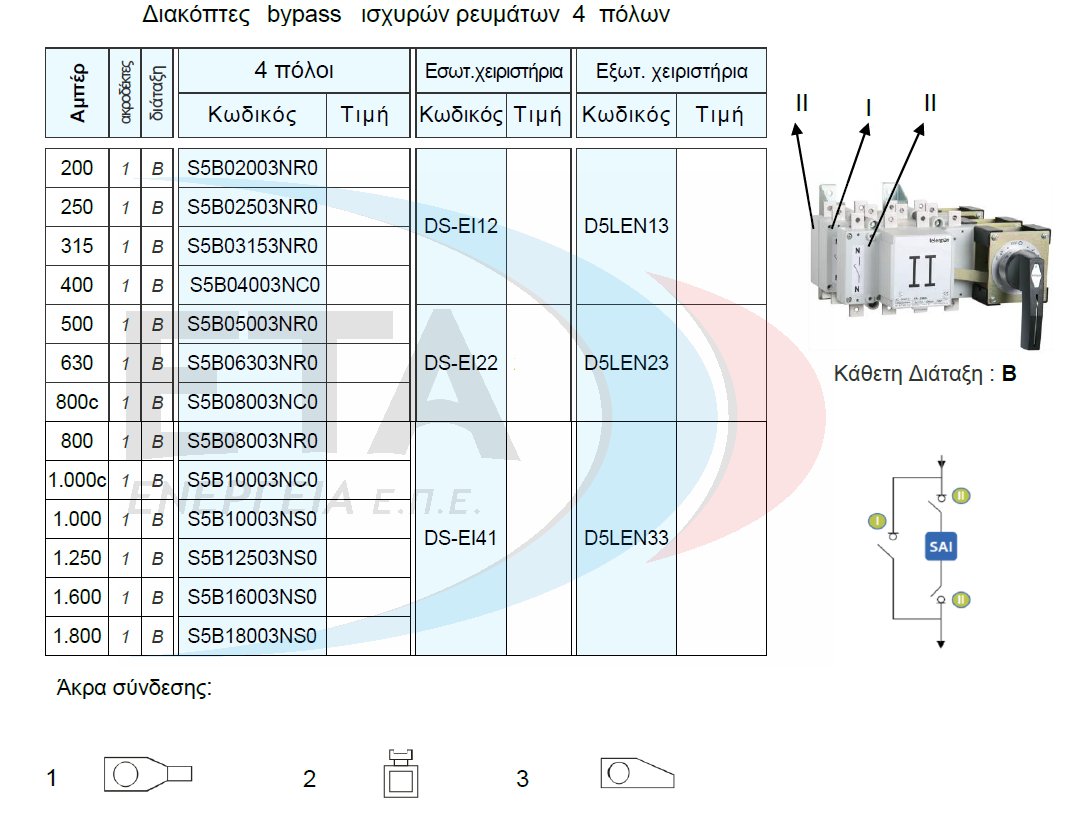 Bypass changeover switches I-0-ΙI AC S5000B 3 x-3 x+N 500A-630A. Telergon