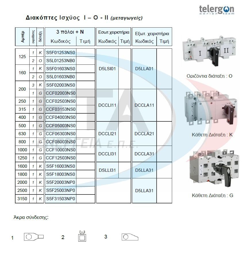 Changeover switches I-0-ΙI AC S5000F 3 x -3 x +N 1600A-1800-2000A. Telergon