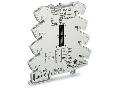 Temperature signal converters -200 up to +300°C (Pt46), 0 up to +180°C (Cu53). 857-808 WAGO