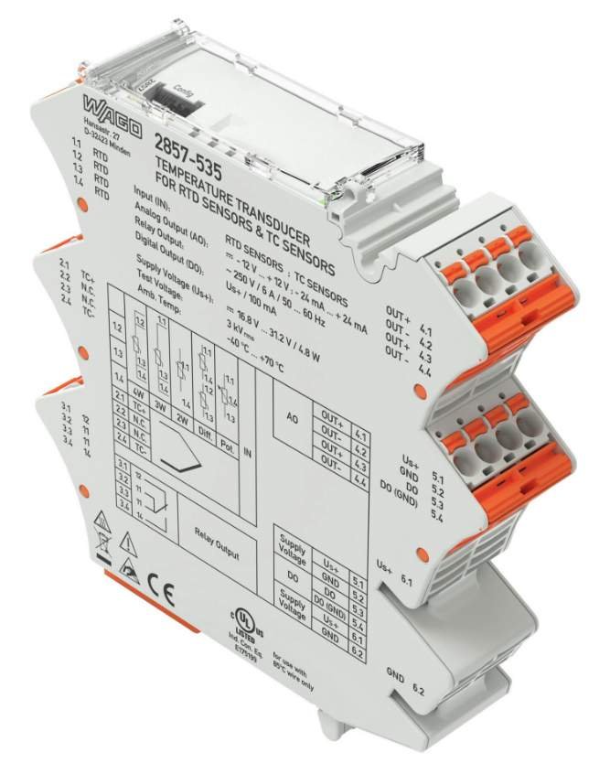 Temperature signal converters for RTD/TC sensors, analog signals, resistances & potentiometers. 2857-535 WAGO