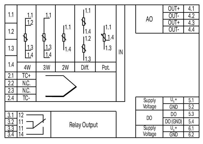 The RTD-TC temperature transmitter for RTD sensors, potentiometers, resistors and thermocouples is used to monitor and report signal states of up to 2 switching thresholds. In addition, the detected sensor or Status information converted to an analog standard signal.
