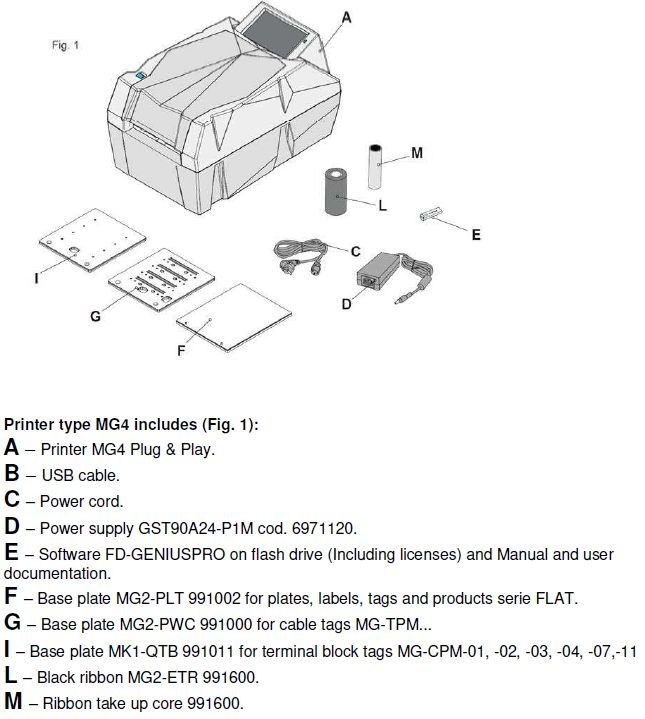• Included with the MG4, Cembre developed also the GENIUSPRO marking software, the most flexible and intuitive sw on the market, always updated, unique for all Cembre systems. Now also in mobile version GeniusApp (based on android & iOS), with which can be able to independently create files or sharing projects.