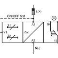 Individual selection of the time ranges from 0.1 s to 100 h. For mounting on DIN-rail.