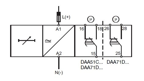 - DAA51 output: relay 5 Α (1 x NO+NC)