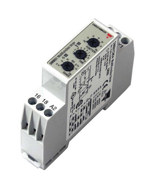 Multi-voltage multifunction mini-DIN timers with 1 or 2 contacts. Time range: 0.1 s - 100 h. Carlo Gavazzi