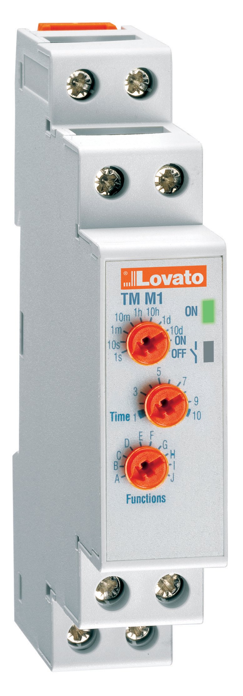 Multi-voltage and multi-function timer with selectable time ranges ( 0.1 s - 10 days ), selectable timing functions, output relay (1 x NO+NC) and potentiometer for time adjustment. The TM M1 multi-function timers are mounting on DIN-rail and have housing 17.5 mm wide, suitable both for back and front panel mounting.