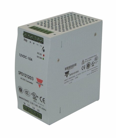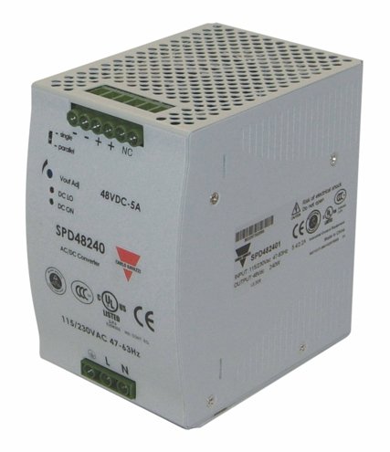 For higher currents, our 120 W, 240 W and 480 W versions can be used in parallel mode. Our power supplies will accept a 120/220 V AC input voltage (and DC also) and provide a DC voltage output. We offer outputs in 5 , 12 , 15 , 24 and 48 VDC.