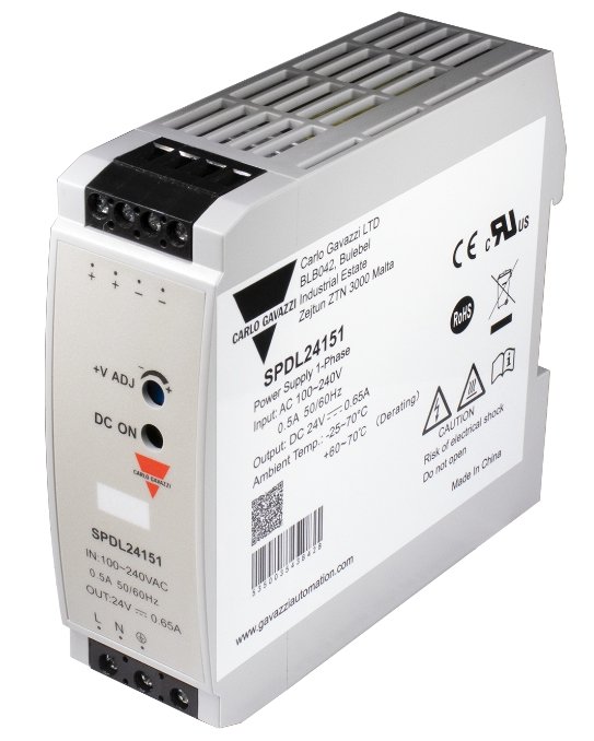 The SPDL series of DIN-rail mount power supplies encompasses high performance within an extremely compact footprint. Power ratings are available in 15, 30, 60, 75, 120, 240 and 480 W, with 12, 24 or 48 VDC output.The SPDL achieves high operating efficiency of up to 95% @ 230 VAC. Features such as DC ok output relay (for SPDL 240 and 480 W model) and built-in protection functions ensure a high degree of reliability during operation.