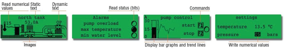 The LRX SW P01 editor software permits to make dedicated screens by taking advantage of the graphic display to view bitmaps, bar graphs and trend lines.