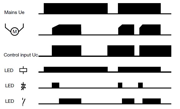 The softstart time can be adjusted from 0.5 to approx. 6.5 s.