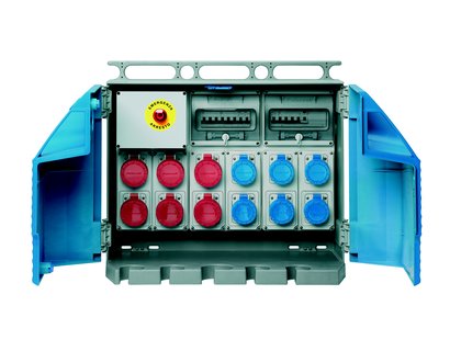 - Assemblies for construction sites (ACS) with interlocked socket-outlets protected by MCB entry with inlet 50-60Hz IP65
