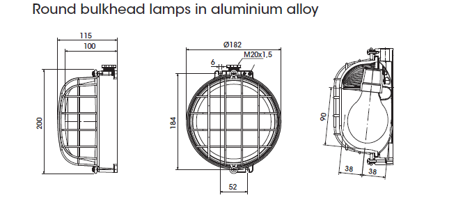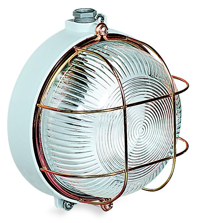 - Round light fixtures in aluminium alloy with protective cage in steel IP66