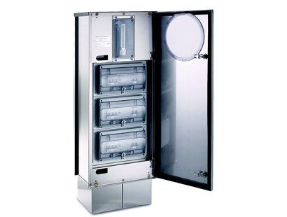 Characteristics: the protection devices can be mounted on EN50022 rail in 3 separate watertight insulating enclosures. The input and output of the power supply lines can be made from below. Suitable for fastening onto concrete using max. M10 threaded pins (not included).