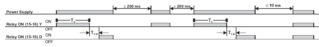 Special multi-voltage (and 380-415 V AC) Star-Delta timers with 4 selectable time ranges within 0.1 s and 600 s., for mounting on 22.5 mm DIN-rail housing or 36 mm plug housing.