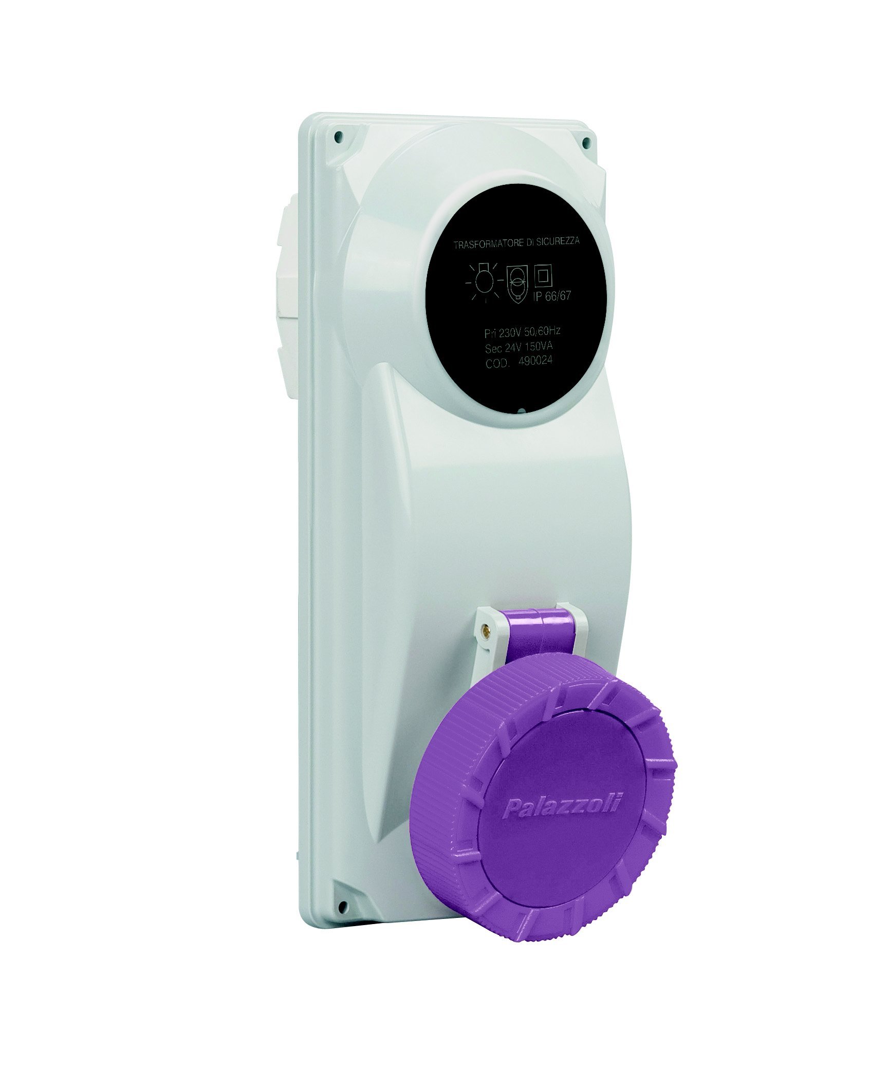 - Socket with safety transformer (SELV) for distribution boards 50-60Hz IP66/IP67