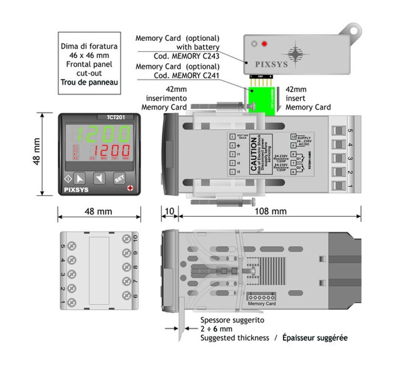 - Dimensions: 48x48 (front panel) x 107 mm
