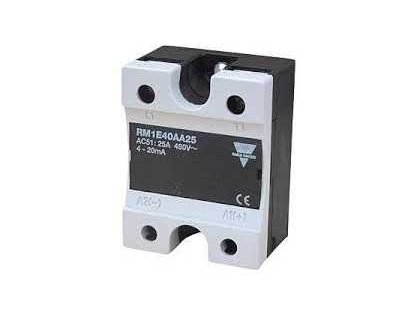 RM1E, the analog switching relay works in accordance with the phase angle control principle, i.e., the output switching point in the AC sine wave depends on the control input which can be either 4-20 mA or 0-10 V DC. The 4mA or 0 VDC correspond to zero output power whilst 20 mA or 10VDC correspond to full output power (near linear power response). The relay switches off every time the output current crosses zero, and switches ON in accordance with the applied control input.