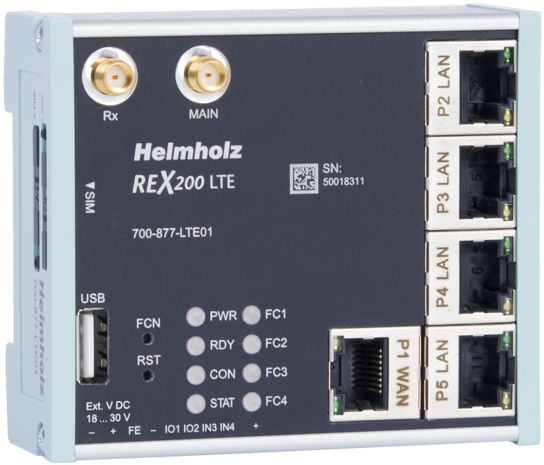 REX 200 LTE, 4 x LAN (switch)/1 x WAN/1 x LTE modem